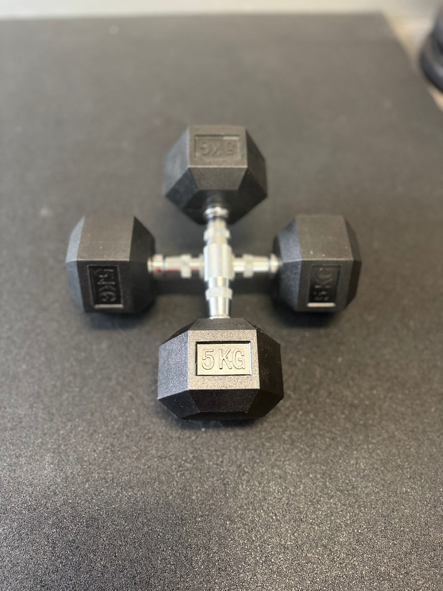 Yes — the rubber-hex heads help protect floors and reduce noise compared to bare-metal dumbbells.