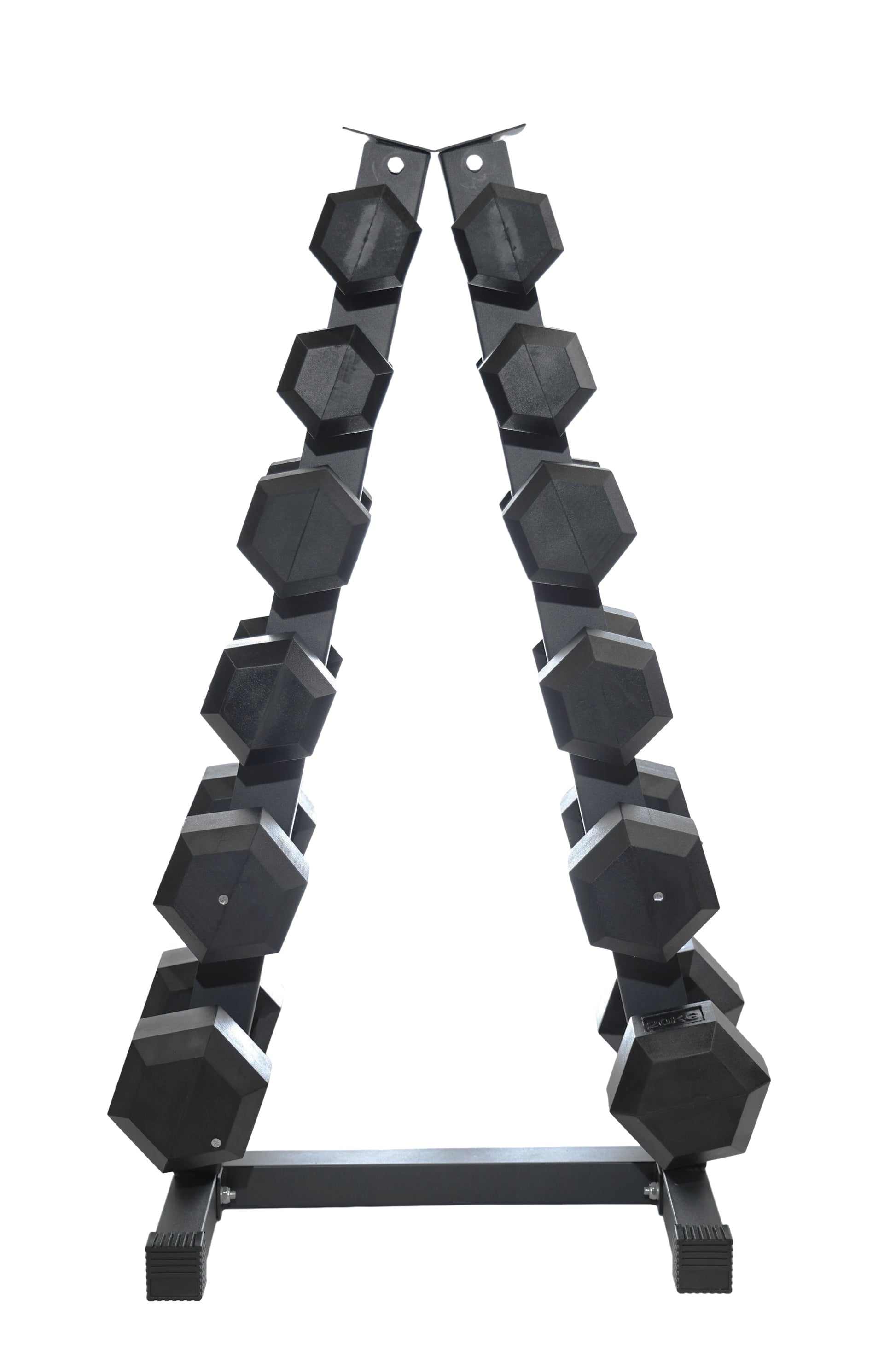 - Rack: Heavy-duty dumbbell storage A frame rack (included)